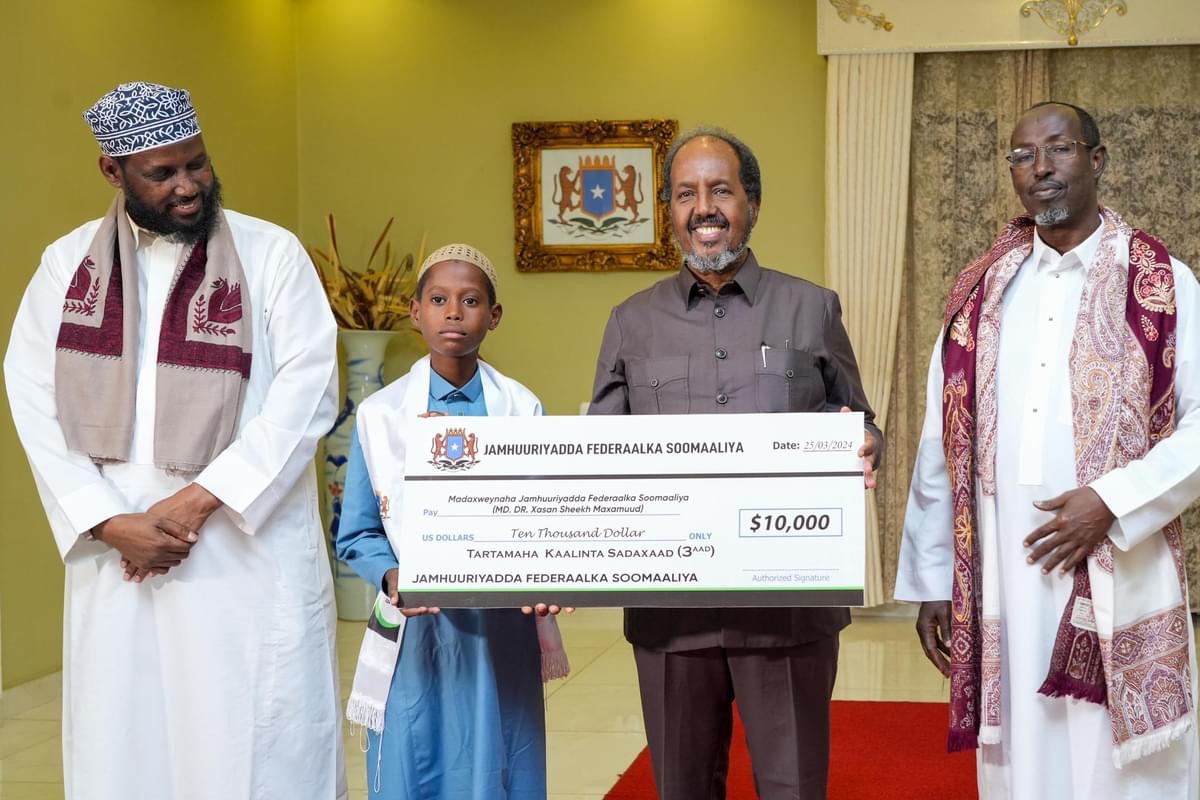 Madaxweynaha oo abaal-marin guddoonsiiyey 7-da tartame ee ugu sarreeya sannadka labaad ee Tartanka Quraanka Kariimka ee Jamhuuriyadda Federaalka Soomaaliya ayaa sheegay in halyeeyadan ka socda gobollada dalka oo idil ay ka turjumayaan dhaqanka Soomaaliyeed ee ku saleysan diinta Islaamka iyo wanaagga.